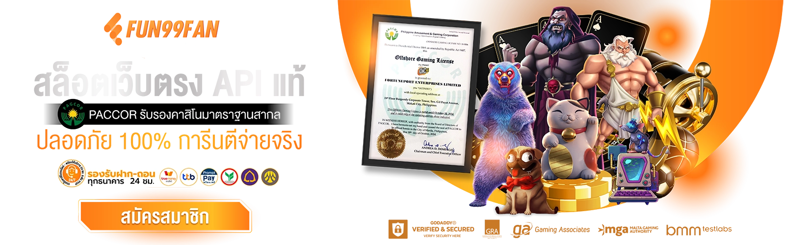 หมดปัญหากวนใจเรื่องฝากถอนล่าช้าที่เคยเจอมาได้เลย เมื่อคุณก้าวเข้ามาเป็นส่วนหนึ่งของครอบครัวเรา เพราะเรามีระบบฝากถอนอัจฉริยะที่ทำงานด้วยความเร็วแสง ยอดเงินเข้าบัญชีทันทีที่กดทำรายการ ไม่ต้องส่งสลิปยืนยันให้วุ่นวาย รองรับทุกธนาคารชั้นนำในประเทศไทย และที่พิเศษสุดๆ คือเรารองรับระบบ TrueMoney Wallet อีกด้วย เพิ่มทางเลือกในการทำธุรกรรมให้หลากหลายยิ่งขึ้น ตอบโจทย์คนรุ่นใหม่ที่นิยมใช้กระเป๋าเงินออนไลน์ ความรวดเร็วนี้ไม่ได้แลกมาด้วยความเสี่ยง แต่แลกมาด้วยความประทับใจที่สมาชิกทุกคนพูดเป็นเสียงเดียวกันว่าดีย์งามพระรามแปด! นอกจากนี้ [fun99fan] ยังการันตีความมั่นคงทางการเงินในระดับสูงสุด มีเงินทุนสำรองหมุนเวียนมหาศาล พร้อมจ่ายหนักจ่ายจริงในทุกยอดถอน ไม่มีการอั้นยอดหรือจำกัดวงเงินต่อวัน อยากถอนเท่าไหร่ก็จัดไปได้เลยเต็มเหนี่ยว ให้เพื่อนๆ ได้ใช้เงินที่หามาได้ด้วยความสามารถของตัวเองอย่างเต็มที่ ด้วยมาตรฐานระดับสากลที่ การเงินมั่นคง จ่ายครบทุกบาท รองรับวอเลท ทำให้เราครองใจนักเดิมพันทั่วฟ้าเมืองไทยมาอย่างยาวนาน ลองแล้วจะติดใจจนไม่อยากย้ายเว็บหนีไปไหน